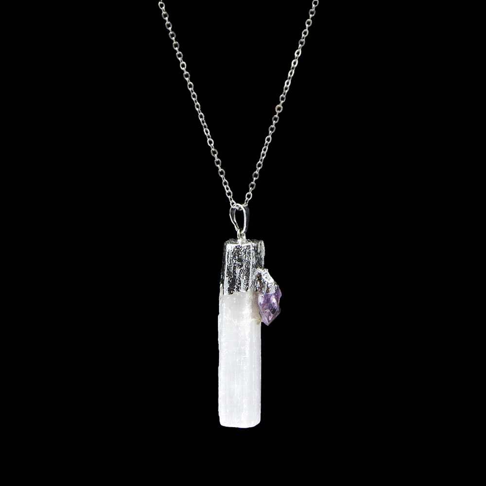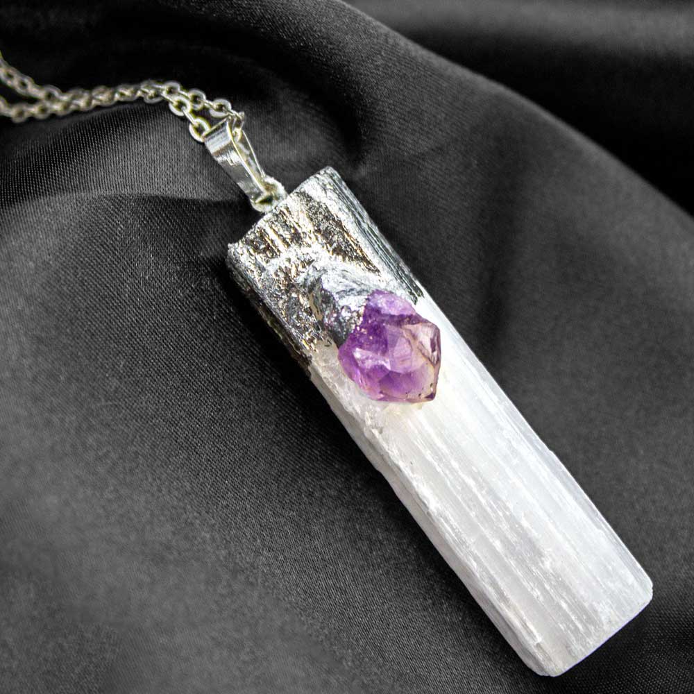 Selenite Stone is a type of Quartz, that is clear and white in appearance. Selenite Stones are linked with spirituality and inner energy. This stone can help you with reaching your spiritual objectives and manifesting your desires in life. It can also aid you in releasing anxiety or anger or any other form of negativity that is holding you back from improving your life, this includes unwanted energies from the atmosphere, such as those that might make you feel uncomfortable or depressed, as well as protecting you from any forms of psychic attacks. The Duzy in the pendant is helpful in recovering of sexual abuse, guilt or shame. It also aids in the treatment of heart and lung disorders, and enhances metabolism and healthy sexuality.