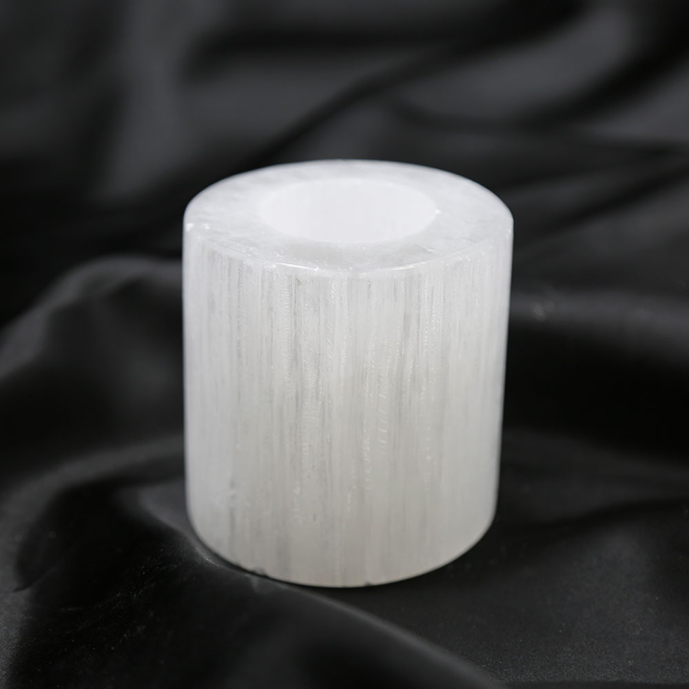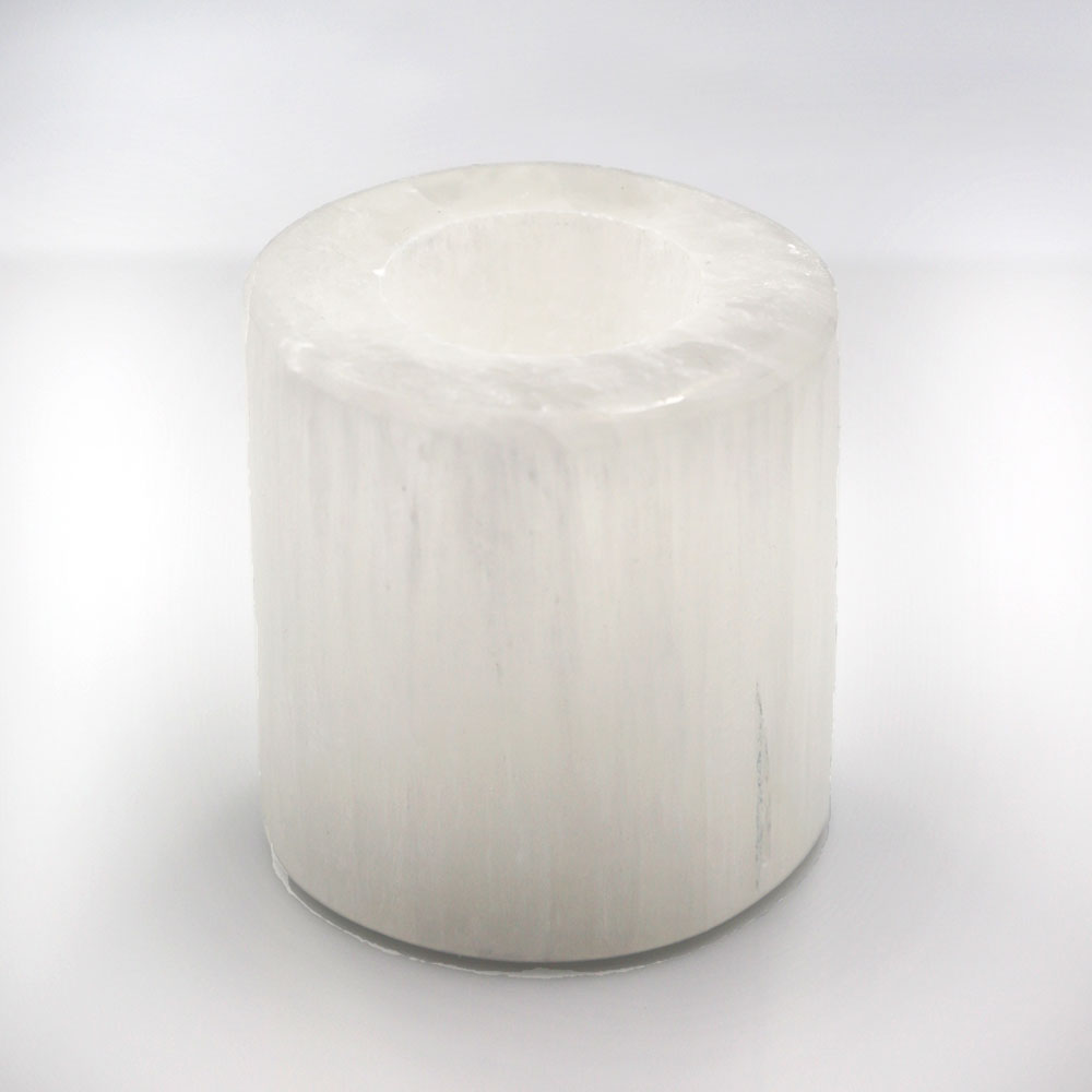 Selenite Round Tower Candle Holder – Small